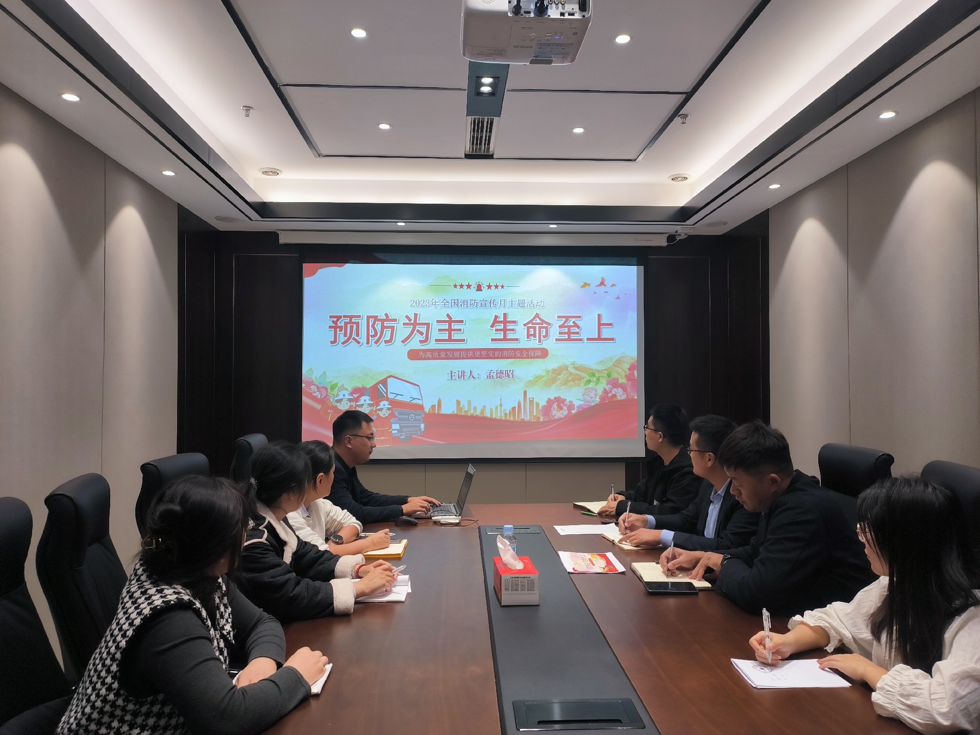11月7日上午,为了增强全体员工的消防安全意识,东泰建工集团在7楼会议室组织开展消防安全培训活动,安全总监孟德昭对在公司总部办公的全体员工进行消防安全知识培训。